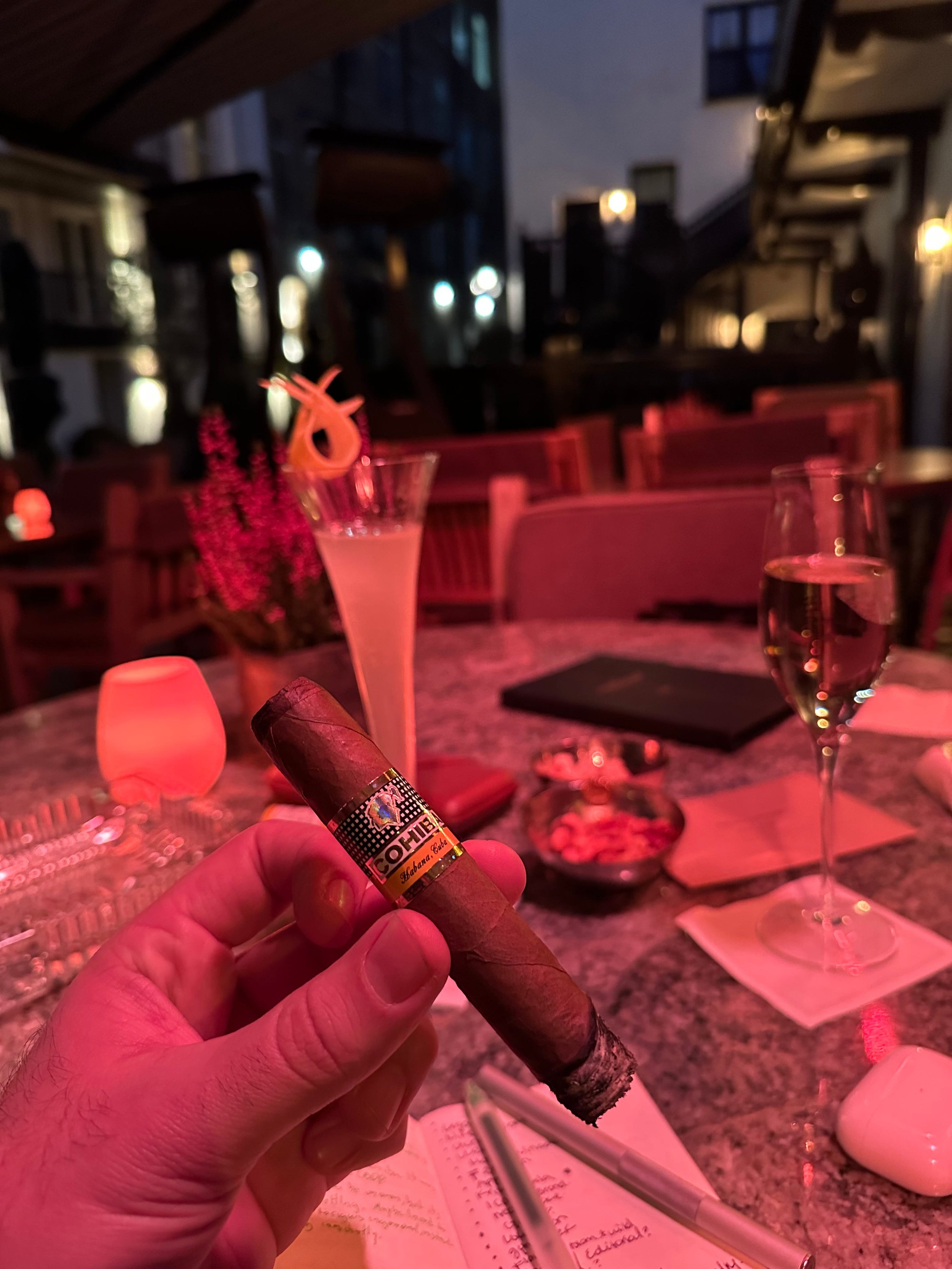 Here is what I’m smoking this month! Cohiba Robusto Tubo 4 7/8” X 50 pareo, and to continue with the celebration theme we paired it with a French 75 cocktail followed by champagne. What doesn’t go well with champagne?